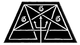 Within the Temple of Set, the Order of the Trapezoid was defined initially in X / 1975 as the Priesthood; i.e., degrees III°+. While this was done as a matter of record, to restore the Order to the meaning it had had most prominently during the I-X period, nothing was initially done about the insignia—for the obvious reason that the Judeo-Christian symbolism of the “666” and Satanic trident seemed rather at odds with the Temple’s trans-Judeo/Christian orientation. Also to be considered were the instructions of Set in the Book of Coming Forth by Night that the pentagram was to be “pure,” which you don’t do by cutting the bottom point off.